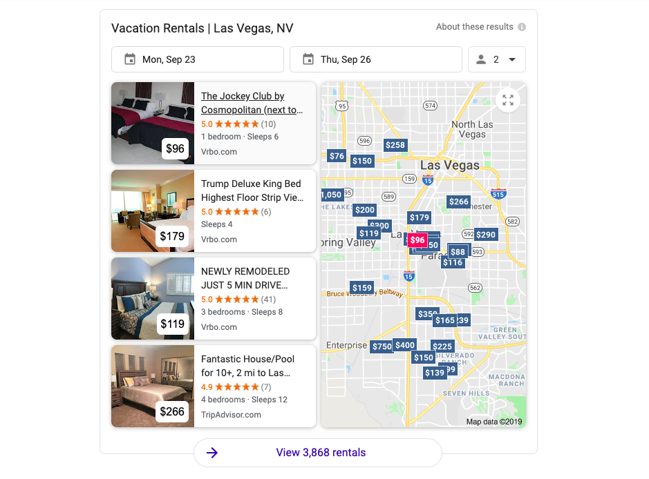 A few weeks ago, Google rolled out their new Vacation Rental Search which they’ve integrated with Google Hotels. The Vacation Rental Search allows users to browse vacation rentals without the need to ever leave Google.